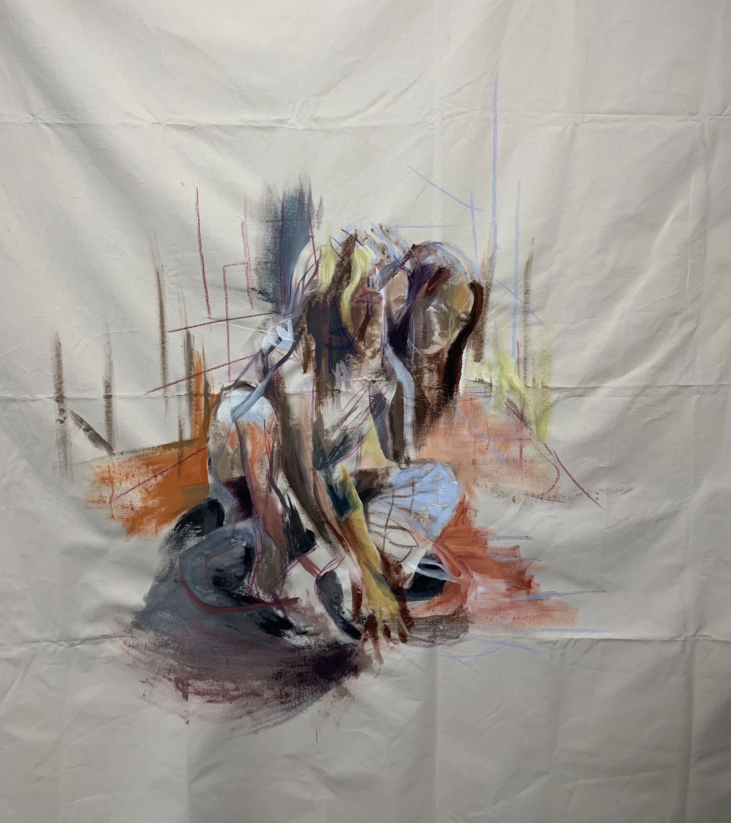 Untitled, 2019, Acrylic, crayon, on unstretched canvas ~58 x 50 in