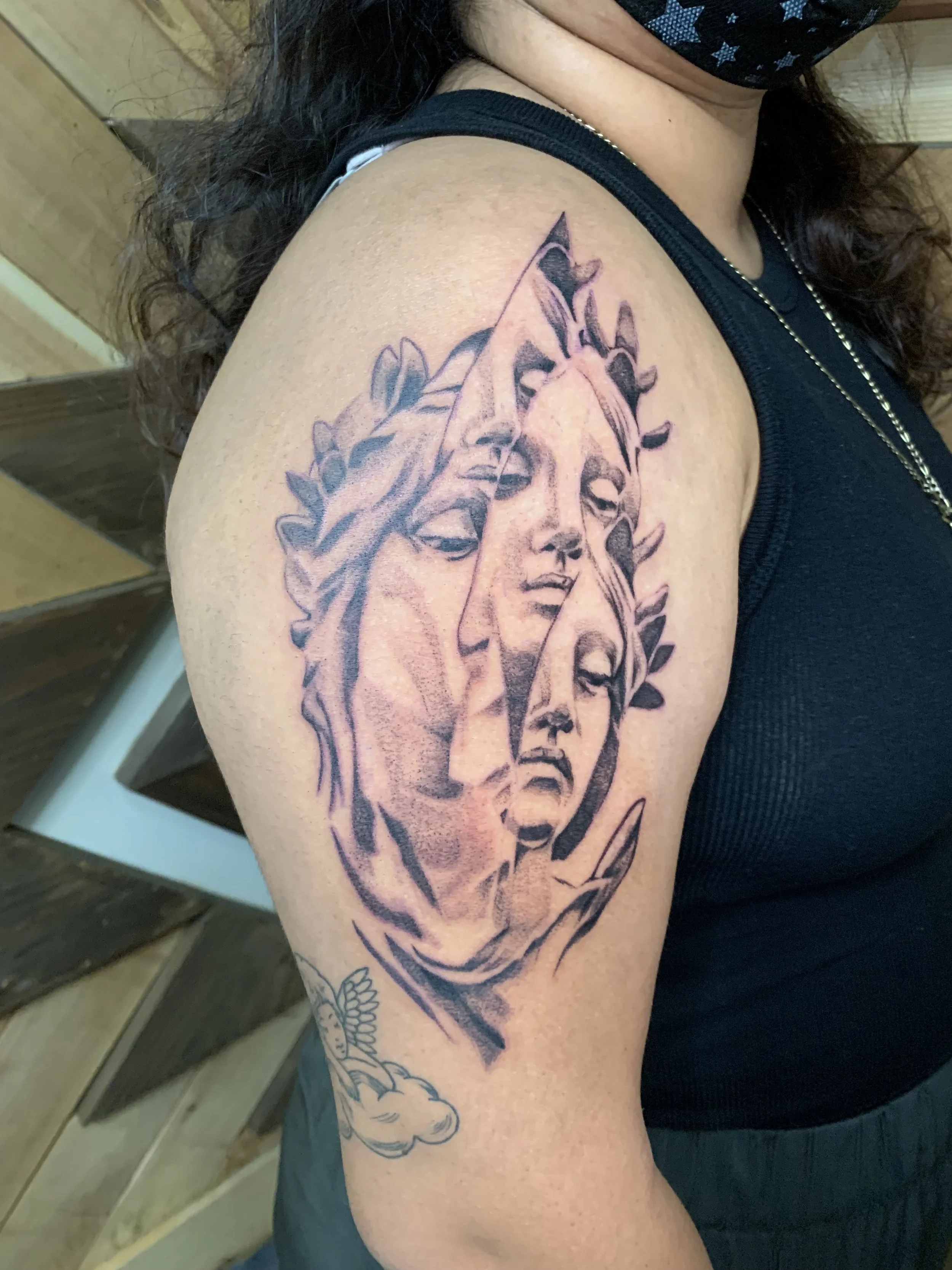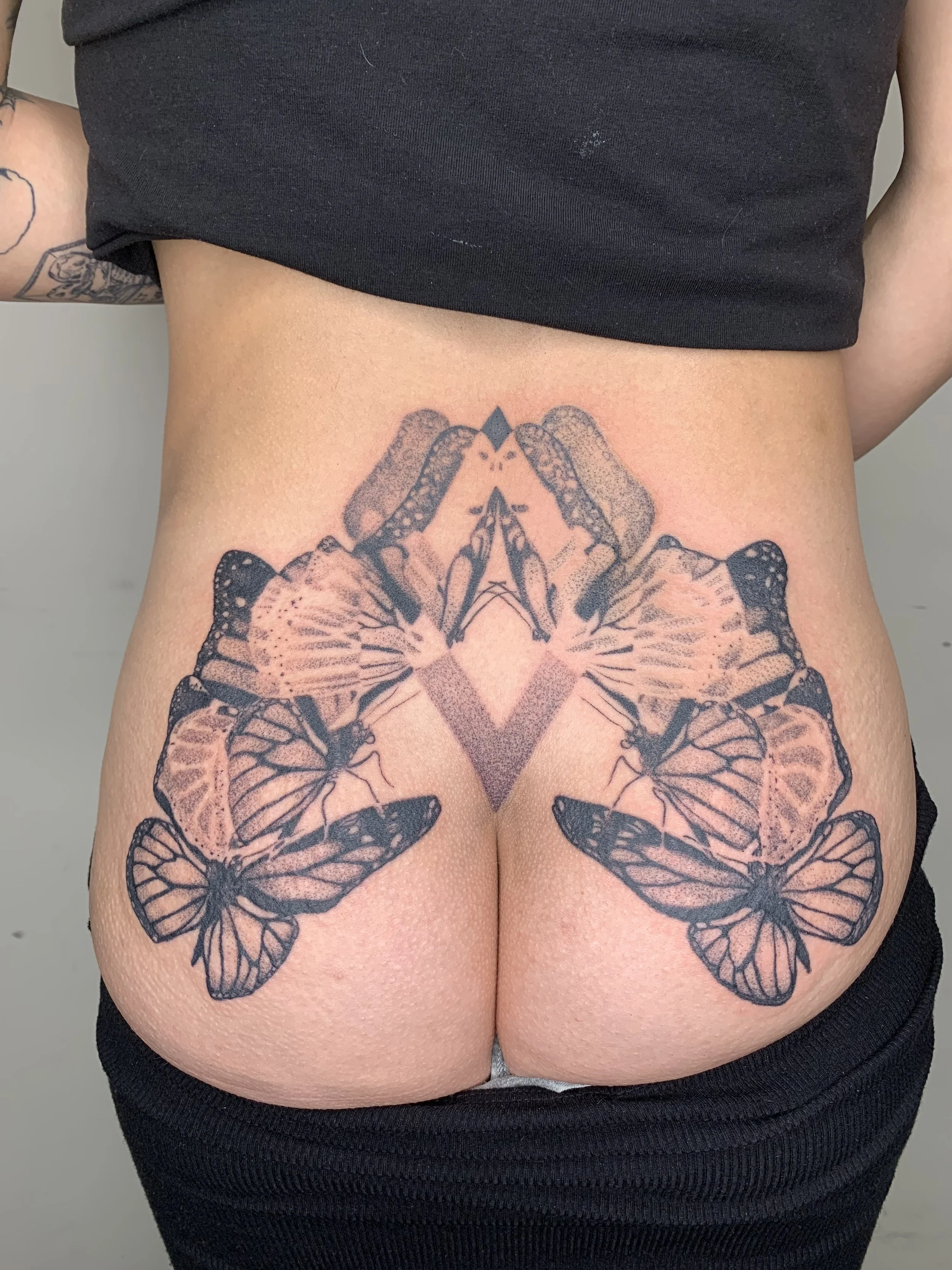 A selection of completed tattoos, a mix of pre conceived designs and custom works done in collaboration with the client